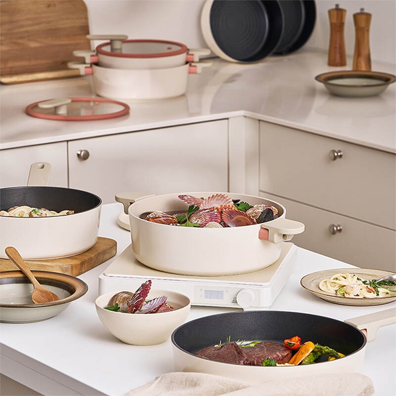 CAC2255IH - Nồi chống dính Suit Bric LocknLock, bằng nhôm, 2 tay cầm, 22 cm - màu ngà