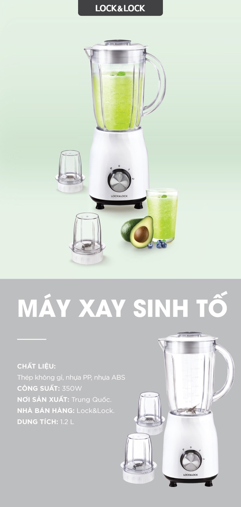 EJM366SLV - Máy xay sinh tố Lock&Lock Power Blender 220-240V, 50/60Hz, 600W - Màu bạc